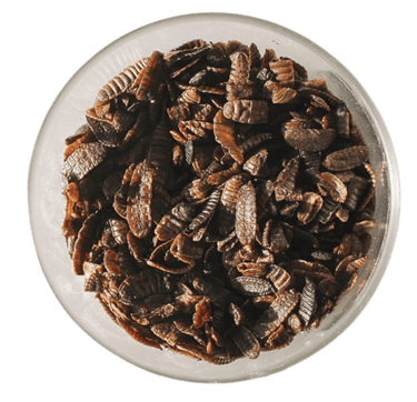 Основното предимство на замразените или живите ларви в сравнение със сухия фураж е техният 100% естествен произход.